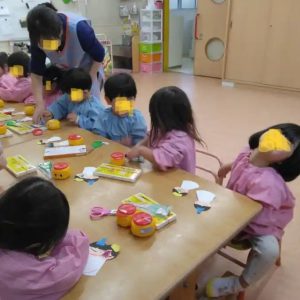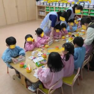 りす組さんは、3月のひな祭りに向けて折り紙工作が始まりました。