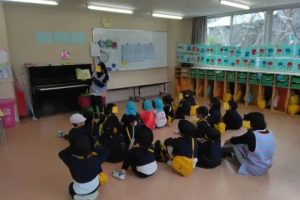 子供たちも、先生の方を見て、お話をよく聞いていました。