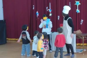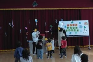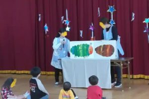 今日は、I先生のピアノの演奏に合わせてM先生のミュージカル風の読み聞かせでした。