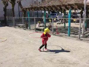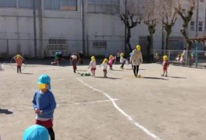 給食の後は、子供たちは広場に出て元気に遊んでいました。縄跳びをしている子も・・・