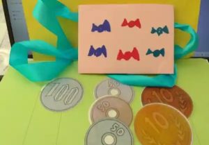 年長さんが、届けてくれたおみせやさんごっこ用のお財布とお金です。
