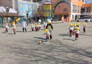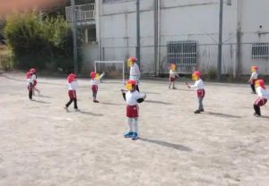 後半は、写真の鬼ごっこの他、ボール蹴りもしていました。