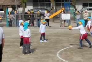 年長さんの最後の体育遊び。保護者にも知らせてあり、大勢の参観がありました。