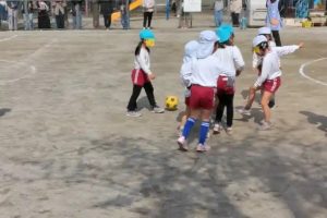 女の子の対戦も、ボールをよく見て動いています。