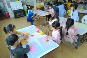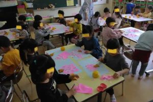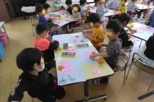 さくら組では、桜の花の貼り絵 工作をしていました。
