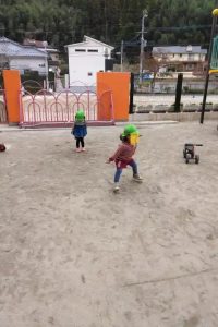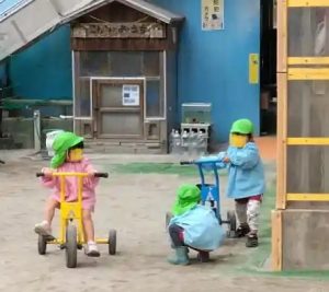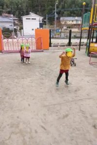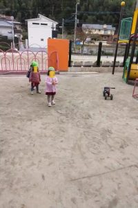三輪車に乗って遊びますが、友達との交換も何の衝突もなく!上手に、譲り合いが出来るようになっています。