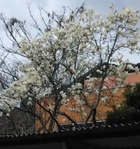 すみれ組の東側のお宅には「ハクモクレン」白い花のモクレンの大木が、花を咲かせて、春を知らせてくれています。
