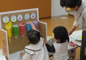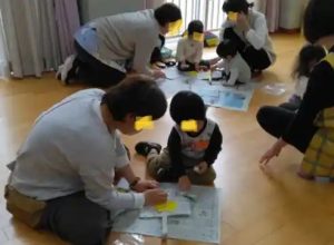 年度遊びや塗り絵など、外遊びはできませんが、「室内遊び」を楽しんでいました。