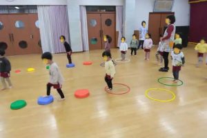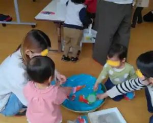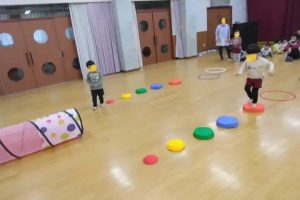 年少さんは、リズム室に写真のような遊具を広げて、