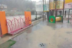 給食が終わった頃から、急に土砂降りの雨になりました。