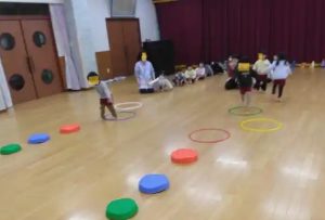 外遊びができませんでしたが、リズム室で遊具を使ったゲームは新鮮で、