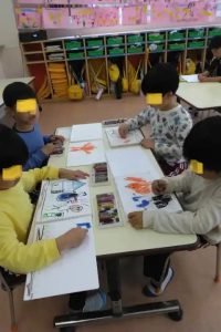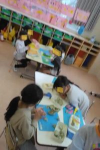 上と下の写真は、年長さんのクラスです。