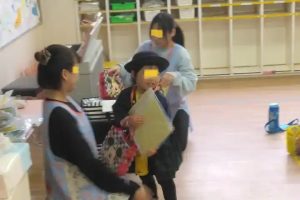 りす組では、転出する二人のお友達の紹介があり、二人に寄せ書きのプレゼントが渡されました。