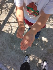 「見て!てんとう虫もいました!」と見せてくれるお友達もいました。そう!昼休みの終わり頃、トイレ前で同じ子に会いました。トイレを済ませて、スリッパをきれいに並べていました。自分が使ったのだけでなく、隣のスリッパも並べていました!感心しました!!!スリッパだけに立派な行いです!