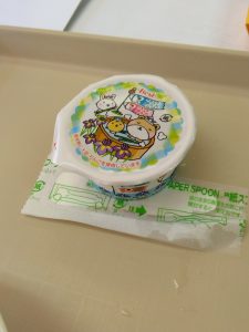 今日は2日ですが、5日の「こどもの日」を祝って、「端午の節句メニュー」①兜かぶと型ハンバーグメニューのロコモコ丼 ②中華コーンスープ ③こどもの日ゼリー(上写真)でした。