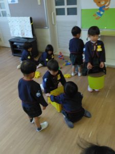 降園前、お片付けをみんなで頑張っています!