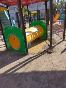 保育士の先生方の日誌には、「トンネルの下の水たまりに大喜びで、遊んでいました!」とありました。子供たちにとって、非日常は、新しい発見があったり、予想外のことがあり楽しい遊び場のようです。