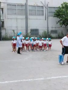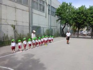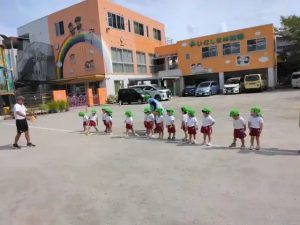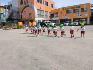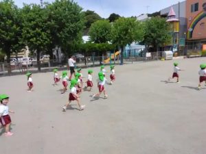 年長さんも運動会練習、年長さんは組体操の演技もあります。早速