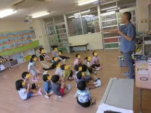 うさぎ組さんは、今日・水曜日がは、トロイ先生の英語遊びの日