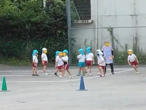 広場は水はけもよく、年長さんは、ドッジボールをしていました。