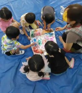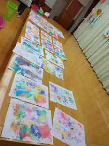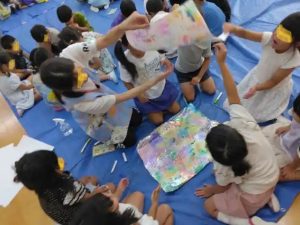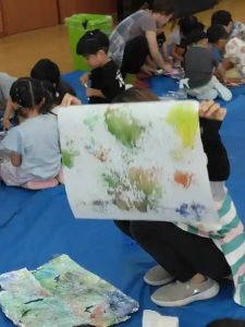 子供たちが思い思いに色を重ねて・・・上のような模様になったり
