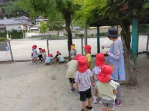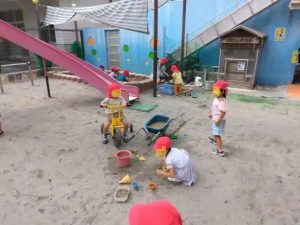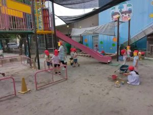 給食の後の、園庭の様子です。
