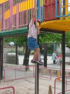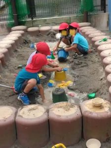 砂場には、水を運んできて遊ぶ様子も! 登り棒も上手になりましたね!!! ちはびっ子公園で先生と一緒に遊ぶ姿も!