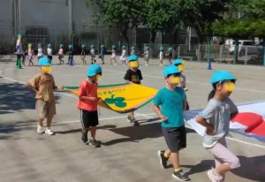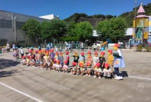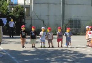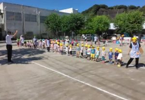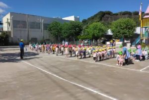 約90分 園児は、待機の時、水分補給をして、熱中症に気を付けさせました。