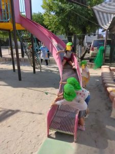 ・滑り台では、上から降りてくるお友達を下の子がトンネルを作って待っています!