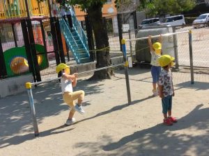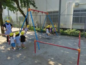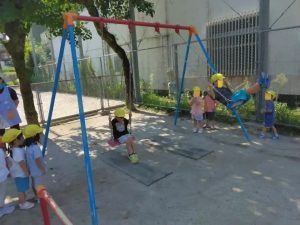 ブランコ遊びも、並んで順番に・・・ 力強くこげるようになりました。