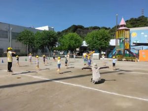 手をしっかり伸ばしたり、 足がしっかり伸びていたり きれいですね!運動会をお楽しみに!