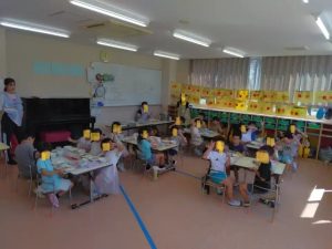 さくら組のお友達は今日は、メルヘンスイミング教室の日でした。スイミングの方も、1学期より、上手になってきているということです。運動会の練習をとおして、体力が付き、泳ぐのも上手になるのでしょうね!★相乗効果!!!ということでしょう!