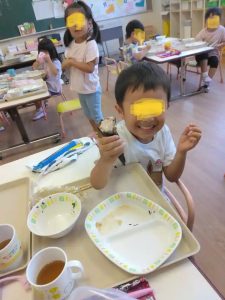 ★★今日のご飯は、すみれ組のお友達が収穫したお米と丸山農園の田んぼで採れた新米のご飯でした!!!★★