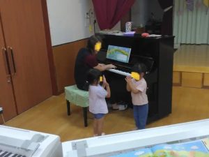 金曜日の登園後には、ヤマハ音楽教室をリズム室で実施しています。