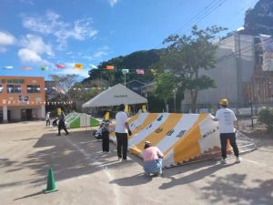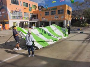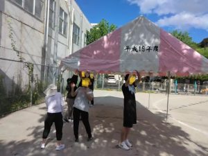 今朝、9時から運動会の会場設営があり、テント設営をしていただきました。