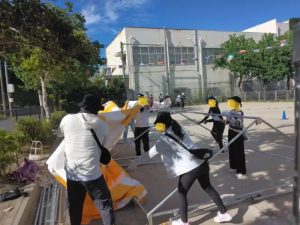 PTA一人一役のお父さん・お母さん方、早朝からありがとうございました。同時に運転手の皆さんには、万国旗を取り付けてもらいました。台風23号の影響もなく、天気もよくて、幸いでした。