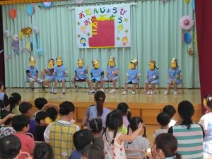 さて、今日は,10月生まれの誕生会がありました。