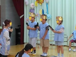 年長さんも年中さんも、舞台の上で、マイクインタビューの時も、堂々としていました。