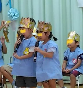 年少さんは、二人でしたが、二人ともしっかり受け答えをし、歌は「森のくまさん」を歌ってくれました。