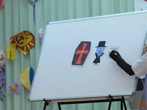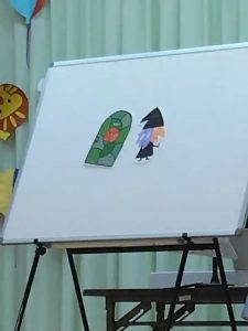 先生方からの出し物のプレゼントは、パネルシアターでした。