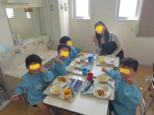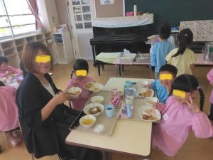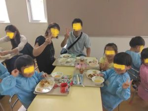誕生会の後は、年中さんの保護者には、給食の試食会に参加してもらっています。
