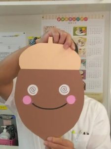 10月の行事には、「どんぐり拾い」もあります、関連して下のようなどんぐりのイラストを見せてくれました!