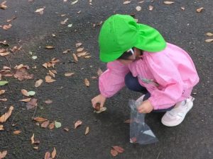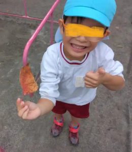 「先生!きれいな葉っぱだよ!」と見せてくれました! 秋を見つけたようです!子供の感性・・・素敵です!
