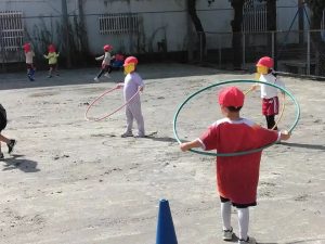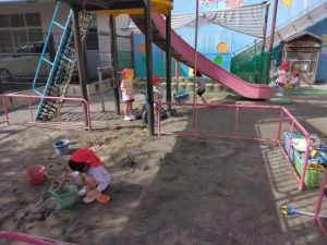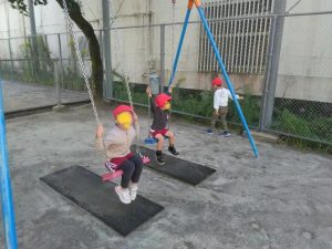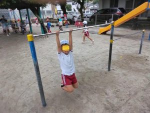 鉄棒をするお友達、何回か逆上がりにチャレンジしていました。ちびっ子公園は、元気な園児で朝からにぎやかです!