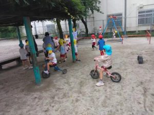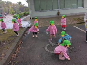 ★雨の神様が、お利口さんのりす組の子供たちを悲しませないように、雨を降らせるのを我慢してくれたようです。