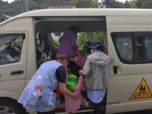 子供たちが、健康の森公園から帰る時には、また雨が降り出しました。