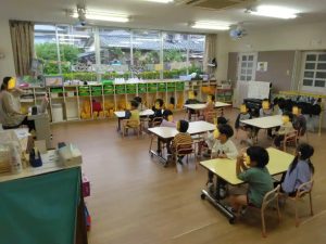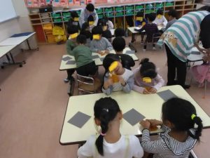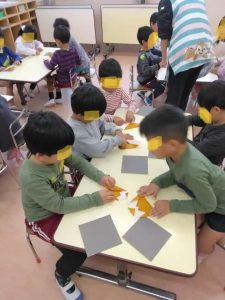 年長さんは、折り紙をしていました。
