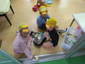 こちらは、年中さん。これからメルヘンスイミング教室へ、雨でもメルヘンスイミング教室はできるのでいいですね。・・・昨日のどんぐり拾いが、晴れていて良かったです!